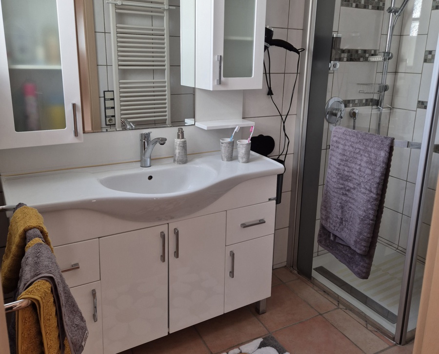 ... finden Sie die Küche, das große Schlafzimmer, das Badezimmer und die zweite Toilette.